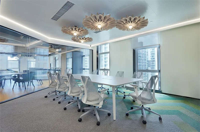 在空間規劃設計上,進行了動靜分區,并打破了原有的動線,路線上進行了延伸、切角設計。在規劃各個功能空間中,充分考慮到建筑外光線與景觀的因素,將最好的光線位置留作員工咖啡交流及健身區,將最好的視野區域作為總部接待大會議室。充分利用自然光,向員工傳遞正能量,其中亮點是每一個部門之間都設計了開放或半通透的多功能交流區域。讓員工參與互動活動、討論或組織公司活動,這種輔助辦公空間充足的情況下,有助于緩解員工工作中的所有壓力,幫助他們度過閑暇時光。
