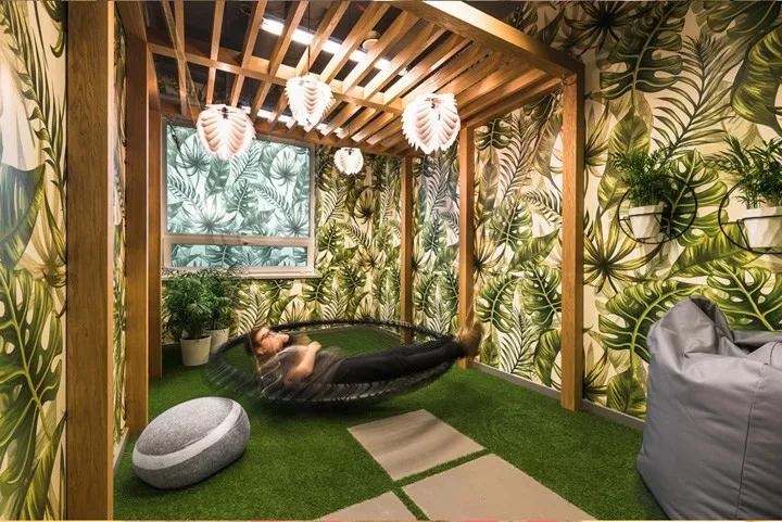 本設計裝修案例聯合辦公空間裝修裸頂工業風,設計團隊以此為靈感提取“神經元突觸”這樣一個理念打造室內空間。一進入該空間,以鋼結構模擬的“神經元突觸”三維元素構筑的接待大廳,就像興奮的交感神經脈沖過大腦一般,帶來與眾不同的非凡體驗。