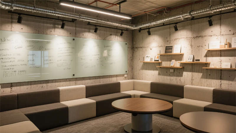 這里不僅是工作容器,更是激發創造的能量場——金屬管道的硬朗遇見暖光燈帶的溫柔,數字屏幕的冷光映照著木紋肌理的溫度,在合肥這座創新之城,重新定義著未來辦公的生命力。