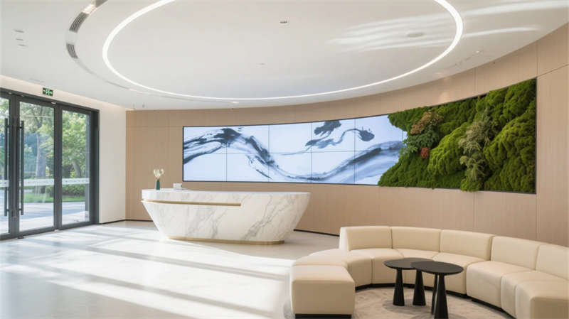 智能接待廳以流動(dòng)數(shù)字藝術(shù)傳遞先鋒調(diào)性,而健康茶水間則通過有機(jī)材質(zhì)與綠植裝置,構(gòu)建松弛有度的能量補(bǔ)給站。整體空間拒絕刻板分割,家具模塊可隨需求自由重組,金屬線條與低飽和色彩在自然光照下沉淀出理性而溫潤的質(zhì)感。
