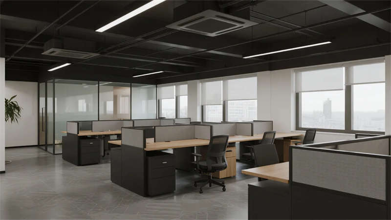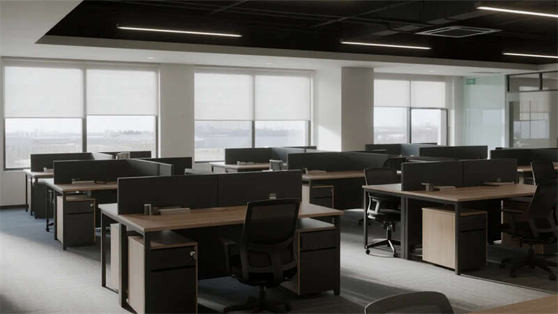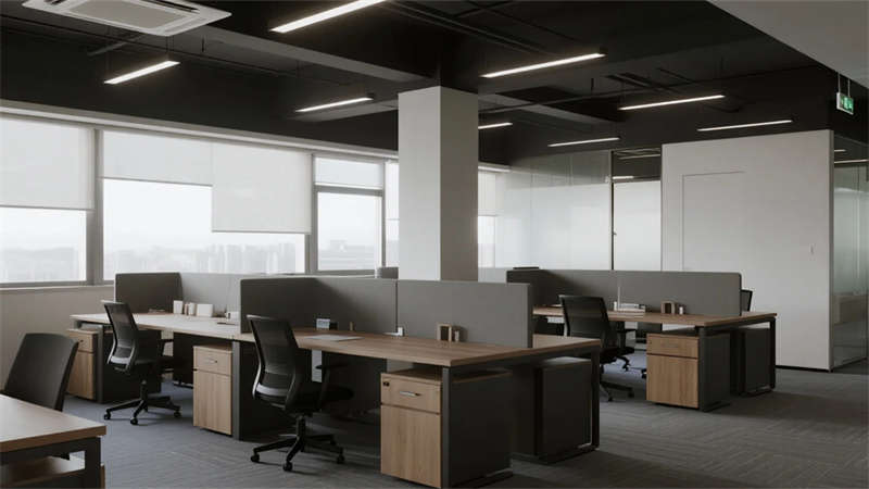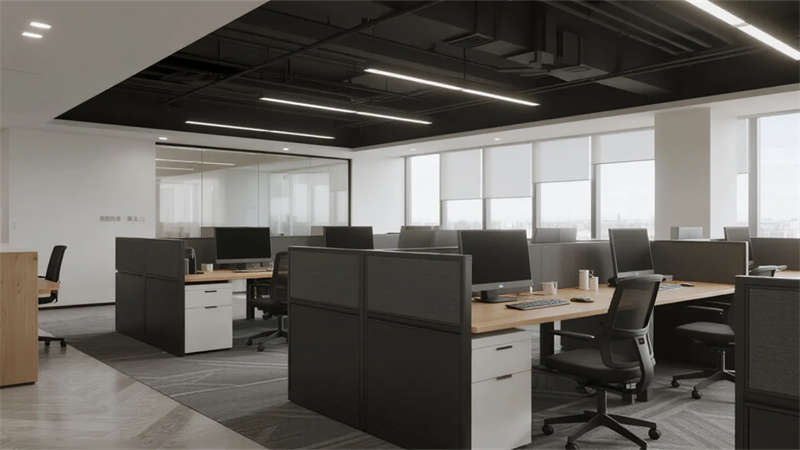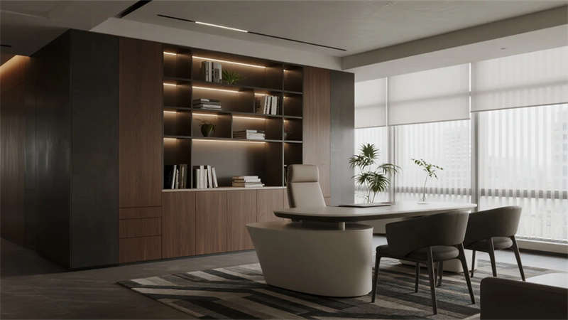 開(kāi)放辦公區(qū)依托巨幅落地窗引入自然韻律,升降工位與模塊化家具賦予空間彈性;獨(dú)立辦公室通過(guò)垂直百葉調(diào)節(jié)光影私密性,暗藏式書(shū)柜燈光烘托沉穩(wěn)氣質(zhì)。核心協(xié)作區(qū)打破傳統(tǒng)封閉模式,弧形沙發(fā)與可書(shū)寫(xiě)玻璃墻激發(fā)即興創(chuàng)意,而茶水間綠植墻與城市景觀(guān)吧臺(tái),則在高效節(jié)奏中注入呼吸感。