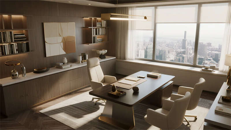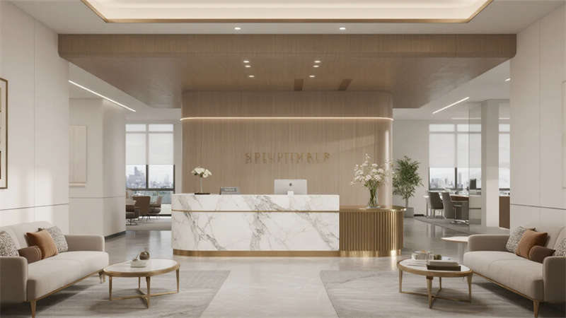 本設計以輕奢風格為核心,打造一個優(yōu)雅而舒適的辦公環(huán)境。外觀采用現(xiàn)代建筑語言,玻璃幕墻與金屬細節(jié)相結(jié)合,彰顯高端氣質(zhì)。內(nèi)部空間注重細節(jié)與品質(zhì),接待區(qū)以大理石前臺和金屬裝飾營造歡迎氛圍,開放式辦公區(qū)布局靈活,配備簡約家具和自然光元素,提升工作效率。會議室設計專業(yè)且智能,私人辦公室融合落地窗和 luxury 裝飾,提供靜謐工作空間。員工休息區(qū)與咖啡角注重舒適性,軟裝家具和溫馨 lighting 促進放松與交流。走廊區(qū)域通過藝術(shù)墻面和 lighting 效果增強空間感,整體設計融合材質(zhì)對比與柔和色調(diào),營造出精致而人性化的辦公體驗,強調(diào)美學與功能的平衡。