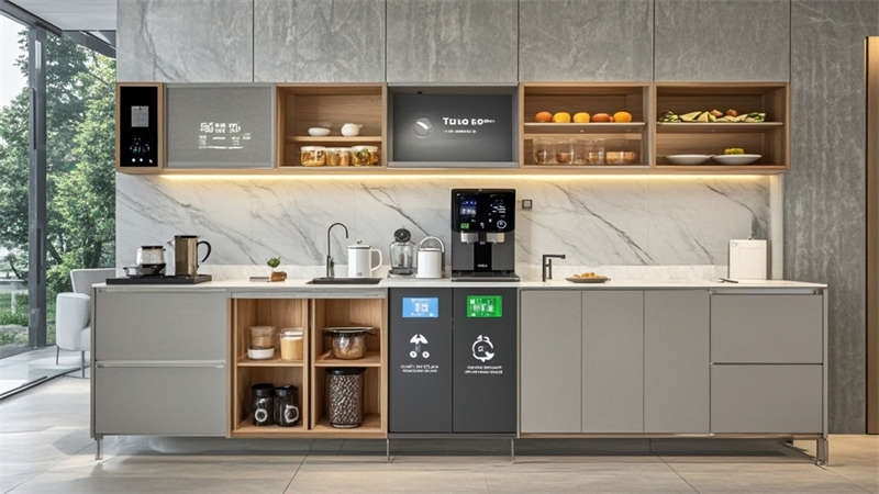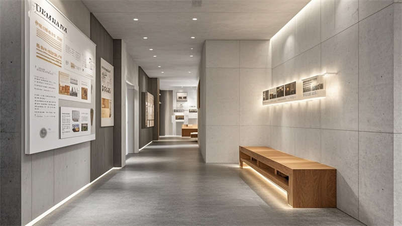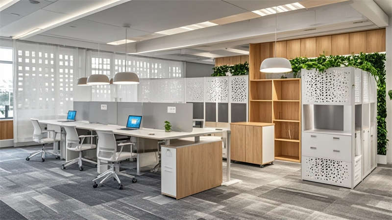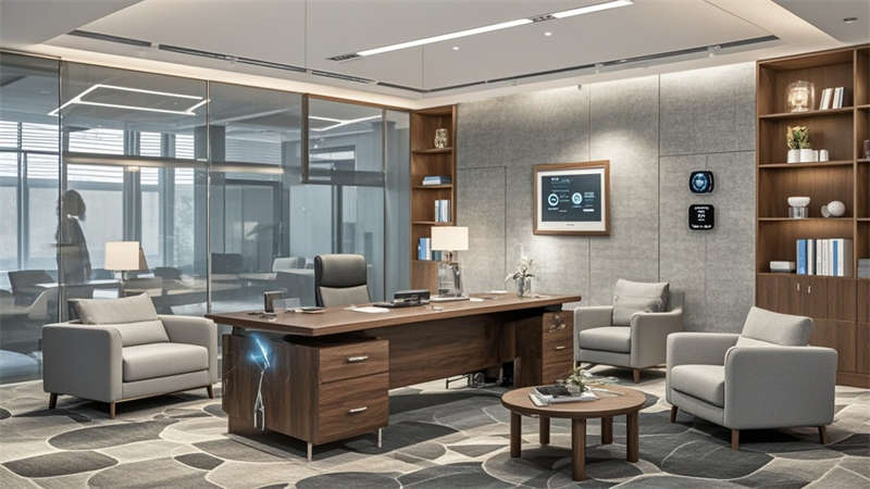 ④聲學(xué)吊頂確保35分貝以下靜音環(huán)境。色彩搭配采用70%淺灰奠定基調(diào),20%原木色增添溫暖,10%企業(yè)藍作為點睛色。環(huán)保方面選用LEED認證材料,集成光伏玻璃幕墻年發(fā)電量達8萬度。