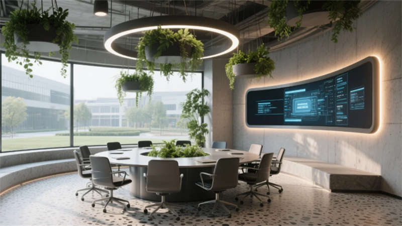 空間摒棄傳統隔斷,運用通透玻璃與可移動裝置實現功能轉換,陽光透過智能窗控系統灑入每個角落。材質與光影的精心編排,構建出兼具高效協作與人文關懷的現代辦公生態,詮釋創新企業的精神內核。