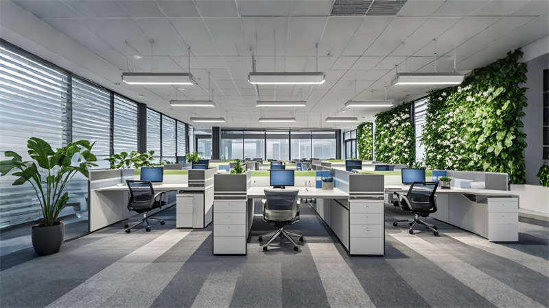 本 7000㎡辦公樓設計采用 ' 高效生態辦公 ' 理念,整體以銀灰、原木、企業藍為主色調。前廳通過 6 米挑高空間與動態光影塑造企業形象,開放式辦公區采用模數化設計實現靈活重組。智能控制系統覆蓋 85% 區域,會議空間配備物聯網設備實現遠程協作。生態設計方面,室內外綠化率達 30%,采用 Low-E 玻璃幕墻節約能耗。動線規劃上,通過核心筒輻射式布局,實現各部門 5 分鐘可達。軟裝選用 A 級防火材料,家具符合人體工學標準,照明系統達到 EN12464-1 標準。特別在聲學處理上,關鍵區域 STC 評級達 50 以上,打造舒適辦公環境。