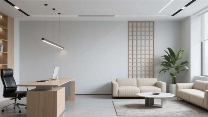 本辦公樓設計以“簡約、高效、自然”為核心理念,采用淺灰、白色與木色為主色調,搭配啞光金屬與線性燈光,構建出兼具專業(yè)度與人文關懷的現(xiàn)代化辦公環(huán)境。