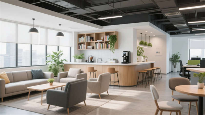 本辦公樓設計以簡約現(xiàn)代風格為核心,打造一個統(tǒng)一而流暢的空間體驗。整體強調(diào)功能性、舒適性和美學平衡,每個功能區(qū)均采用中性色調(diào)、干凈線條和自然元素,營造出寧靜和諧的環(huán)境。大堂入口以開放通透的布局迎接用戶,結合玻璃幕墻和木質細節(jié),傳遞專業(yè)而溫馨的第一印象。開放式辦公區(qū)通過模塊化家具和充足采光,促進團隊協(xié)作與效率。會議室設計注重靈活性,透明隔斷和集成設備支持高效交流。員工休息區(qū)和餐廳咖啡吧作為社交中心,提供舒適休閑空間,增強員工福祉。經(jīng)理辦公室平衡隱私與開放性,簡約家具營造專注氛圍。走廊和衛(wèi)生間延續(xù)統(tǒng)一美學,注重清潔與引導性,確??臻g銜接自然。