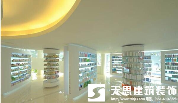 雖然藥店需要保持充足的光線,但是與此同時也要考慮到消費者的隱私。在藥店裝修設計中,在確保藥品空間在整個店面搶眼的空間布置下,還要創造出可以讓消費者隨意瀏覽的氣氛。讓消費者安靜選藥,設計到隱私的藥品可以設計在不是很顯眼的位置。藥店的吊頂不宜設計得太厚重,墻面和地板的顏色應以淡雅為主,否則會給消費者以壓抑感。
