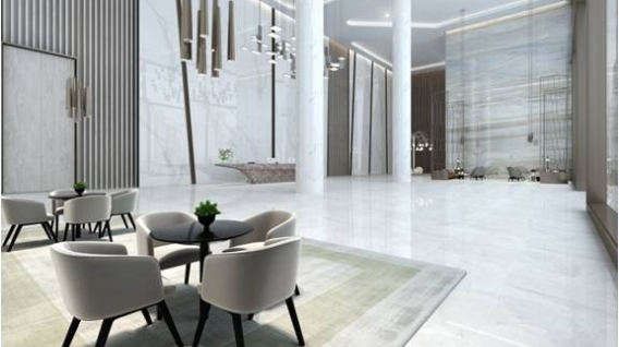 初看遠光軟件的大前廳,便給人一種明亮而大方的大企業形象,這也是由于四周大理石的光滑材質以及吊頂藏光的相互映襯形成的空間感受。以乳白色的圓柱搭配較高的吊頂,營造一種恢弘的風格,在前廳設計中是相對適用的。