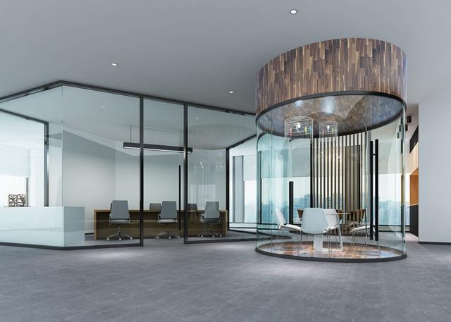 像“巢”一樣的圓柱形洽談區別有寓意,玻璃材質既保證了客戶在洽談時視覺上的通透,也照顧了客戶心理上對私密性的需求。