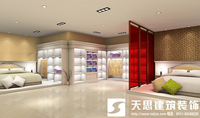 家紡店裝修設(shè)計(jì),家紡店裝修裝飾一定要找正規(guī)專業(yè)的裝修裝飾公司,這樣才能保證設(shè)計(jì)和裝修的質(zhì)量!安徽天思建筑裝飾工程有限公司是一家專業(yè)公裝公司,擁有國家等級(jí)資質(zhì),集家裝、工裝、綠化園藝、監(jiān)理、裝飾材料為一體的現(xiàn)代裝飾企業(yè)。擁有專業(yè)的設(shè)計(jì)和裝修團(tuán)隊(duì),充分實(shí)現(xiàn)了人力資源的優(yōu)勢(shì)整合。借助先進(jìn)的施工技術(shù)和合理的人員配置,確保服務(wù)的質(zhì)量、時(shí)效性和低成本。