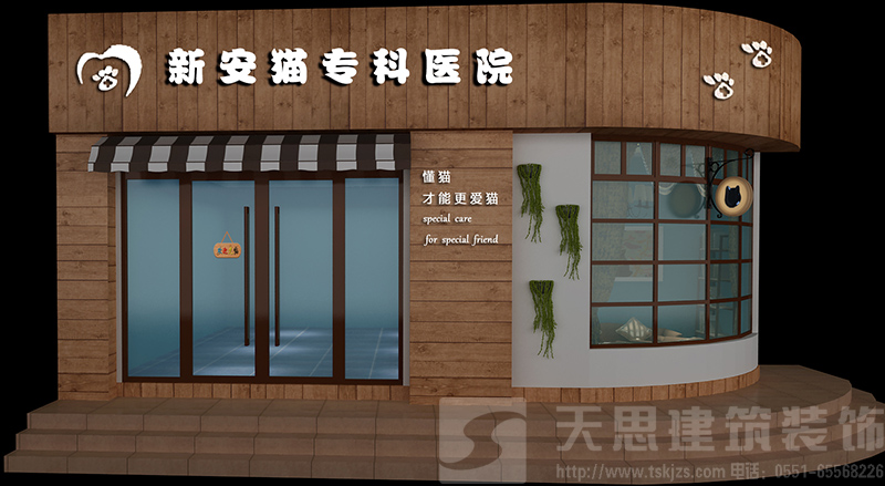 工程名稱:貓科醫(yī)院 設(shè)計(jì)師:葉曉麗 面積:150平米 項(xiàng)目地址:廬陽(yáng)區(qū)北一環(huán)沿河路 設(shè)計(jì)簡(jiǎn)介:新安貓科醫(yī)院是一家專業(yè)為寵物貓?zhí)峁┽t(yī)療、護(hù)理以及美容的醫(yī)院。門頭設(shè)計(jì)