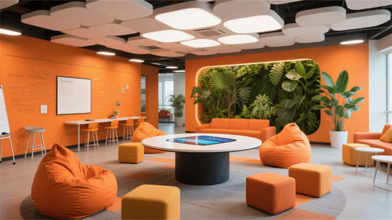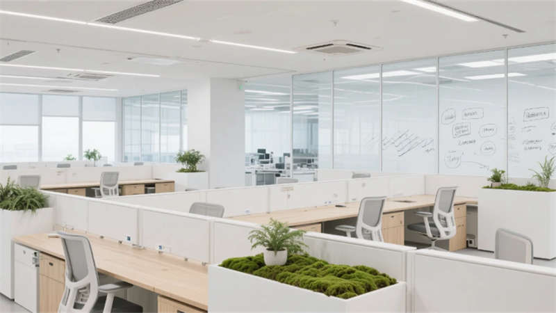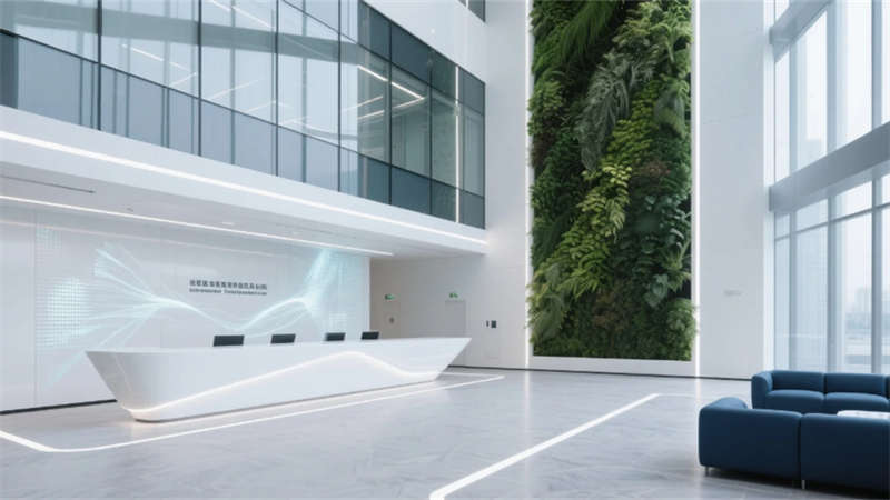 步入其中,純凈的白色與淺灰基調(diào)構(gòu)筑出開闊明亮的基底,大面積玻璃幕墻邀請陽光自由流淌。室內(nèi),垂直綠墻與蔥郁盆栽如音符般跳躍,為嚴謹?shù)难邪l(fā)環(huán)境注入蓬勃生機。開放辦公區(qū)強調(diào)協(xié)作與靈活,可書寫的玻璃墻面激發(fā)無限創(chuàng)意;高度自動化的核心生產(chǎn)車間則如同精密的樂章,潔凈無塵的環(huán)境、流線型的自動化設(shè)備與身著無塵服的工程師,共同演繹著尖端制造的嚴謹與高效。從充滿科技藝術(shù)感的展示廳、活力四射的創(chuàng)意協(xié)作區(qū),到靜謐專注的工作艙、溫馨舒適的休憩社交中心,再到專業(yè)大氣的會議空間,每一處功能區(qū)域都浸潤著統(tǒng)一的未來主義美學(xué)——簡約的線條、智能的光影、環(huán)保的材質(zhì)與克制的企業(yè)色點綴。