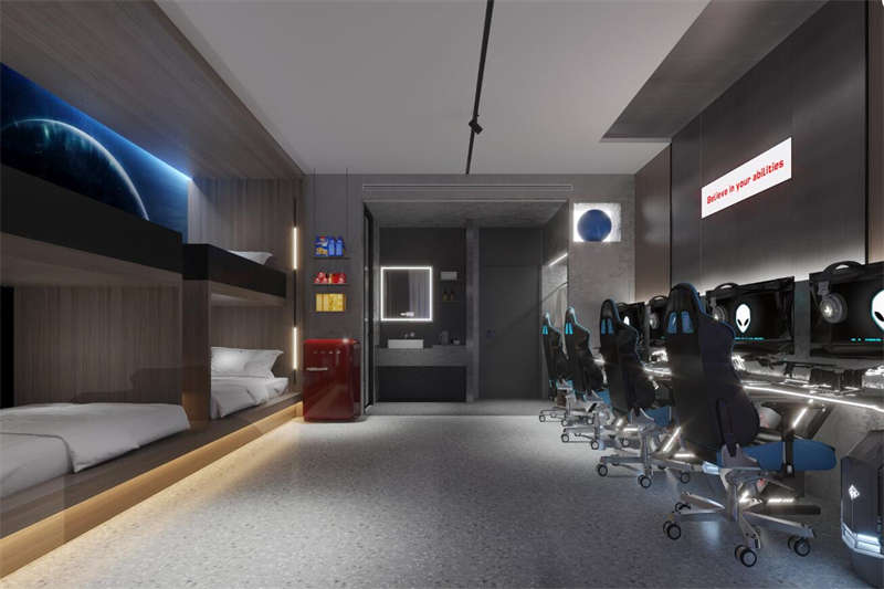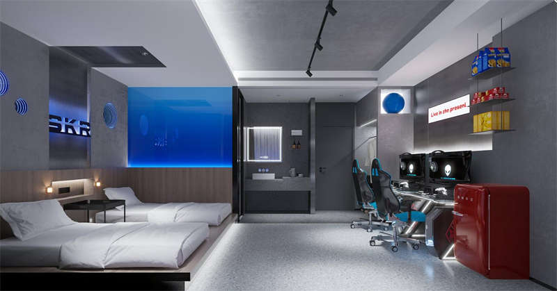 相信很多電競酒店投資人在籌備設計時,都會思索如何將電競元素和入住體驗完美融合。一方面需考慮符合電競愛好者審美,增加潮酷元素;另一方面則需考慮睡眠質量,減少炫目元素。