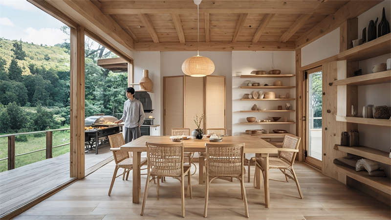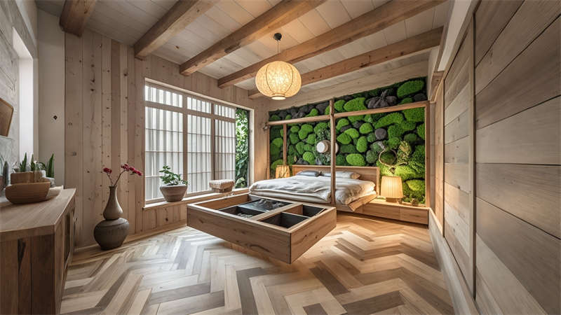 本 1500 平民宿設(shè)計(jì)以 ' 在地重生 ' 為核心理念,采用現(xiàn)代自然主義手法重構(gòu)傳統(tǒng)民居。空間規(guī)劃上保留原始建筑格局,設(shè)置12間主題客房與6大公共功能區(qū)。色彩體系以米白、淺灰為基底,點(diǎn)綴墨綠、陶土等大地色系。材料選用夯土、回收老木、亞麻等環(huán)保材質(zhì),搭配智能化隱蔽工程。