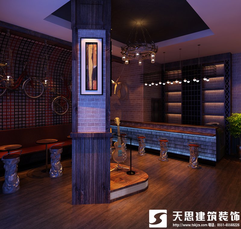 設計公司: 安徽天思建筑裝飾設計工程有限公司 項目面積:180平方 個性的風格是酒吧設計的靈魂,就像人類的思想。酒吧文化從某中意義上來講是整個城市中產階級的文化聚集場所,