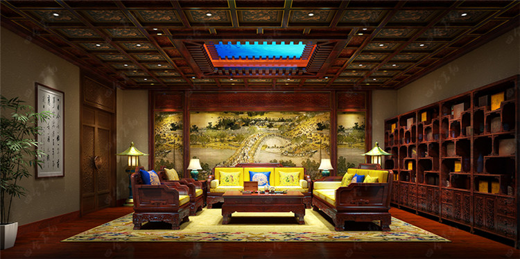 為表現中式傳統大宅的精髓,將中國傳統疏、密、隔、透的造園手法引入會所空間,整合空間秩序,把握空間節奏,使之開合有序,進退自如.豐富的空間層次遞進,橫向通透、縱向通達,體現出"中正平和"的東方哲學思想.