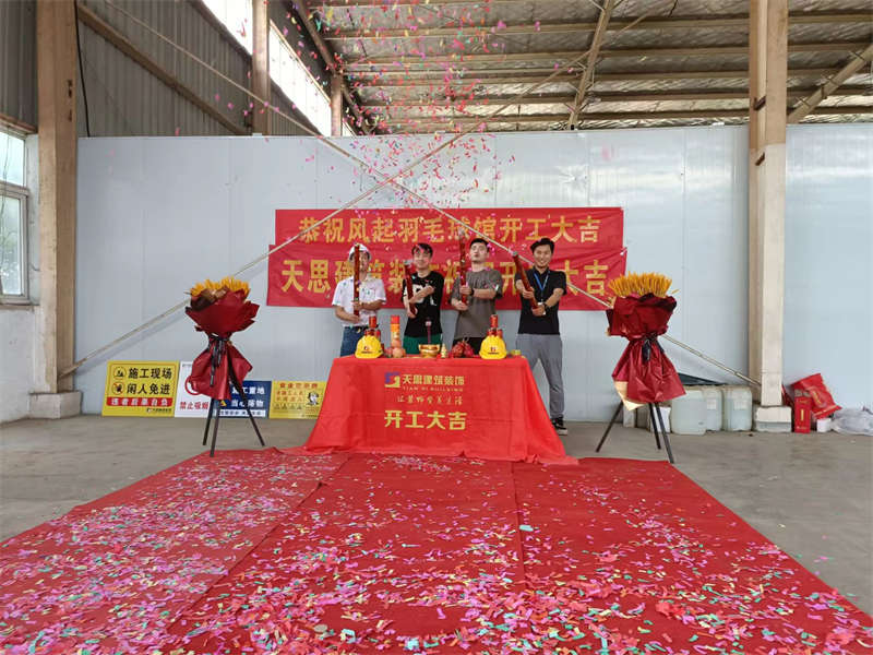 2022年7月18日,陽光高照,在這個晴朗的日子里,風(fēng)起羽毛球館裝修工程正式開工啦,讓我們在這里一起道一聲:“開工大吉!”。感謝業(yè)主對我們天思裝飾的信任,我們必不會辜負(fù)客戶的信任!