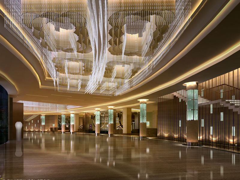 根據酒店室內其功能分區的不同,大堂設計的類型也不僅僅只有一種。其中一些大堂通道也許會通往商店區、餐飲區、會議區等各類型功能空間,甚至也有可能通往與之設計風格截然不同的各種商業區,尤其是某些設計個性鮮明的空間。顯然在這種形式下,大堂已然成為了這些多元空間相互碰撞、相互協調的消化體。巧妙的大堂設計,使建筑外部環境以及室內各空間融合成一個集滿足功能需求、造型藝術美感于一身的多元體,達到把簡單的“多樣性”歸納為多元的"統一性”的目的。