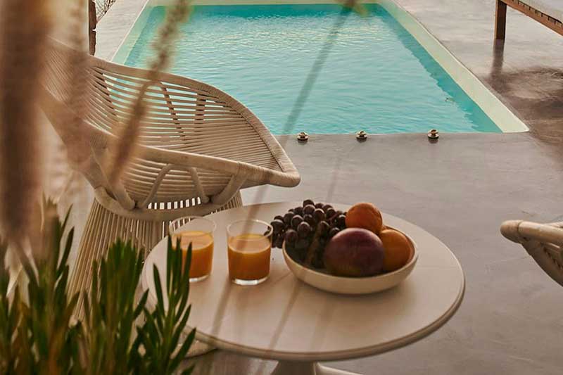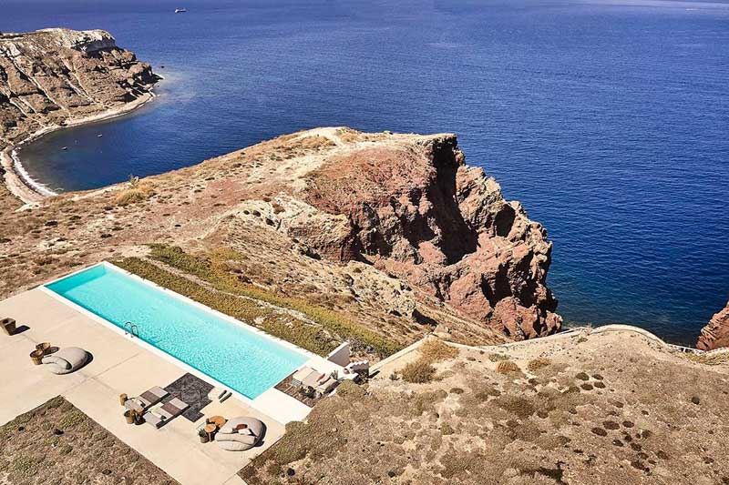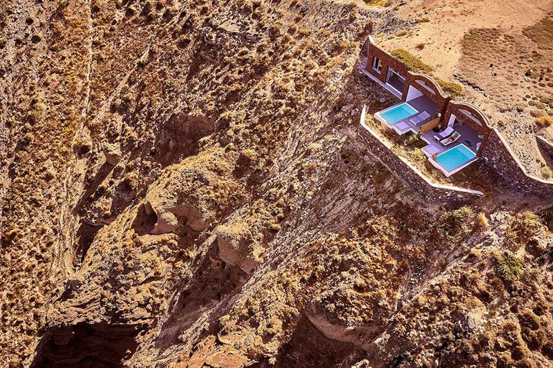 自然生態(tài)度假酒店坐落在圣托里尼島新月形狀的懸崖邊上,預(yù)計于今年5月初開放。在阿克羅蒂里古城附近,游客可以看到來自破火山口附近的碧藍(lán)海水和斑斕陡峭的熔巖層。這片建筑所帶來的與人類密切相關(guān)的體驗,進(jìn)一步點亮了周邊未經(jīng)雕琢的自然世界。復(fù)古飾品、大地色調(diào)和手工家具裝點了酒店的15間套房,筆直的線條、圣潔的白色與靈活的曲線等典型的圣托里尼建筑元素也在酒店中得以充分展現(xiàn)。在這里,人們可以盡享奢華的希臘式住宿,品嘗當(dāng)?shù)鼐虏穗龋惺軛趹已逻叺娜坝境兀趹敉馍缃恢行膮⒓痈鞣N有益身心的活動。
