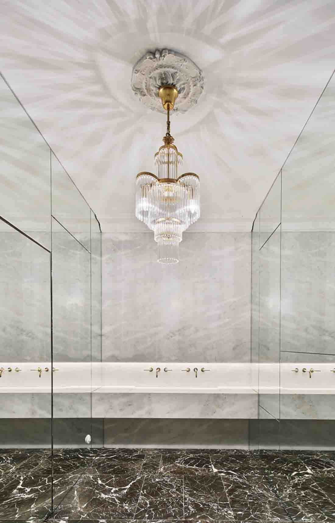 在主樓梯中,天窗被水淹沒,變成了一個(gè)帶有透明底部的小水池,在水中形成了光的活動(dòng),使樓梯上充滿了反射。