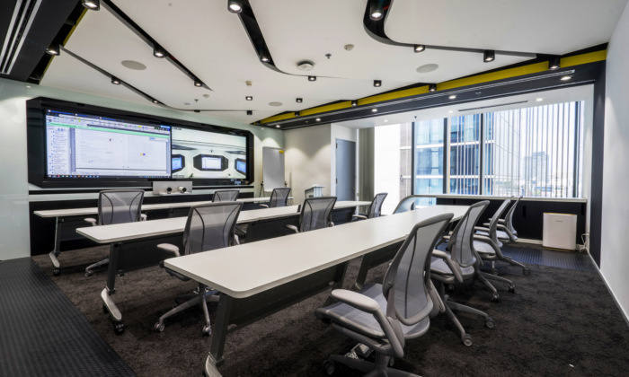 1、辦公室內部規劃是對稱設計,主工作區位于兩側,而功能區位于中心地帶,可供所有員工休息使用。由于企業的愿景中有對征服太空的渴望,團隊工作人員激情滿滿,會進行各種不同的思考。辦公室設計公司設計出來工作太空船,向員工和訪客傳達出了公司的理念,希望技術能夠帶給社會理想的未來。在太空船里沒有接待區,但是指揮室充當了歡迎客人的接待區。大型LCD屏幕和LED照明,外太空的可視化圖像和公司的產品戰略一覽無余。