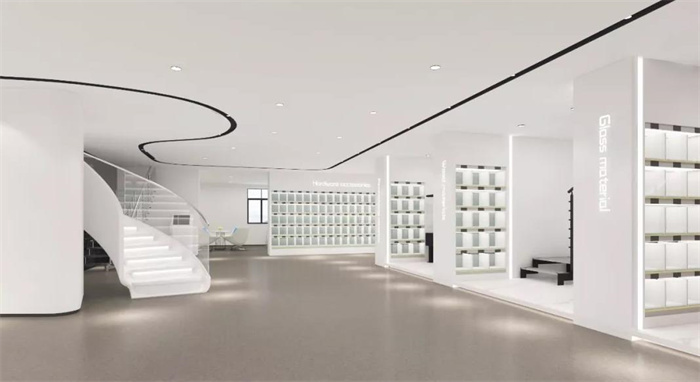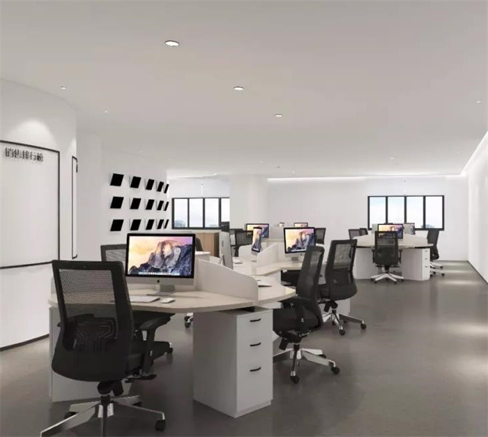 4、辦公室設計主要以現代科技風為主。設計師根據客戶空間需求及展廳空間特點,以產品和洽談相結合的特點,打造辦公和展廳一體化的辦公空間。在滿足功能性的同時兼具藝術性,就采用時尚大白的為主要色系,灰色為輔。簡潔大方,韻味十足,與品牌定位相融合。打造多個辦公區、產品展廳、公司文化墻等深深地融合在辦公空間中,形成現代國際化辦公空間氛圍。