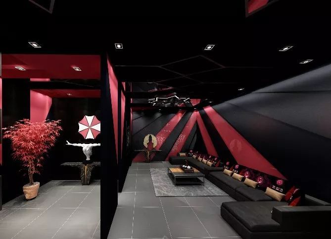 俗話說,氣氛不能輸,一個氣場極強的電競會館絕對可以讓玩家、選手釋放個人最大戰斗力,分泌更多的腎上腺素進入暴走狀態。本次案例整體設計上走的是現代前衛風,以黑色為主色調猩紅色為輔,搭配空間感十足的燈光和炫酷的裝飾元素,緊緊扣合“紅蜘蛛”的品牌主題,同時非常凸顯時尚特色,符合消費群體定位。