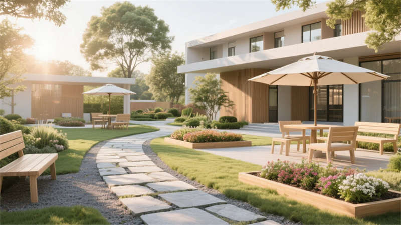 這套老年康養(yǎng)中心設(shè)計(jì)以現(xiàn)代簡(jiǎn)約風(fēng)格為核心,營(yíng)造一個(gè)溫馨、安全且充滿活力的生活空間。設(shè)計(jì)強(qiáng)調(diào)自然光與柔和色彩的融合,入口大廳以開闊布局和藝術(shù)元素傳遞家的溫暖,休息區(qū)則通過舒適沙發(fā)和綠植打造社交港灣。餐廳和活動(dòng)室注重功能性,淺色調(diào)家具與靈活布局鼓勵(lì)日常互動(dòng),促進(jìn)社區(qū)歸屬感。居住單元采用圓角細(xì)節(jié)和私密氛圍,確保舒適休憩。康復(fù)訓(xùn)練區(qū)融入防滑設(shè)計(jì)和自然光,支持健康活動(dòng)。戶外庭院成為心靈綠洲,石板步道與花壇提供寧?kù)o放松。多功能廳則適應(yīng)多樣需求,增強(qiáng)空間活力。整體設(shè)計(jì)以適老化理念貫穿,避免繁雜裝飾,突出簡(jiǎn)約美學(xué)與人性關(guān)懷,讓每位長(zhǎng)者感受到尊重與陪伴,在簡(jiǎn)約中體驗(yàn)生活的美好。