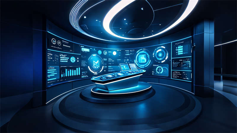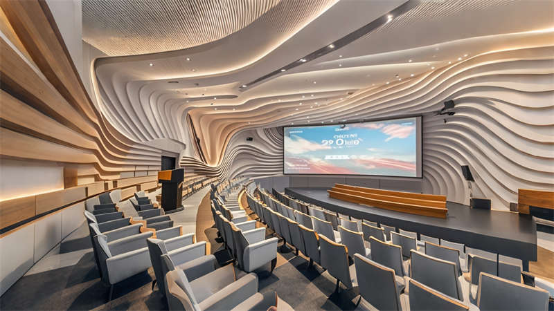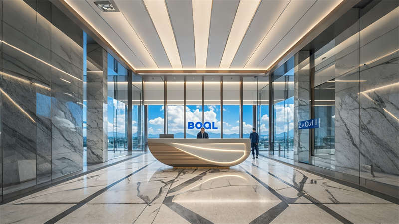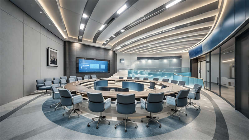 本 3000㎡辦公樓展廳采用 ' 科技人文 ' 設計理念,以灰白色為基調,企業藍為點綴色,打造現代簡約風格。空間規劃采用 ' 展辦融合 ' 模式,前廳設置 10 米通高數字藝術墻,產品區配置智能感應展臺。辦公區采用模塊化家具系統,搭配聲學處理隔斷。動線設計運用環形參觀路線,通過藍色導視光帶串聯各功能區。材質選用啞光金屬、木飾面與玻璃的混搭,科技感與溫潤感并重。照明系統采用 4000K 色溫 LED 線性燈,重點區域搭配軌道射燈。智能中控系統集成環境調節、安防監控和數字展示功能,實現空間高效運營。綠植墻和透光軟膜天花的設計,有效改善室內微氣候。